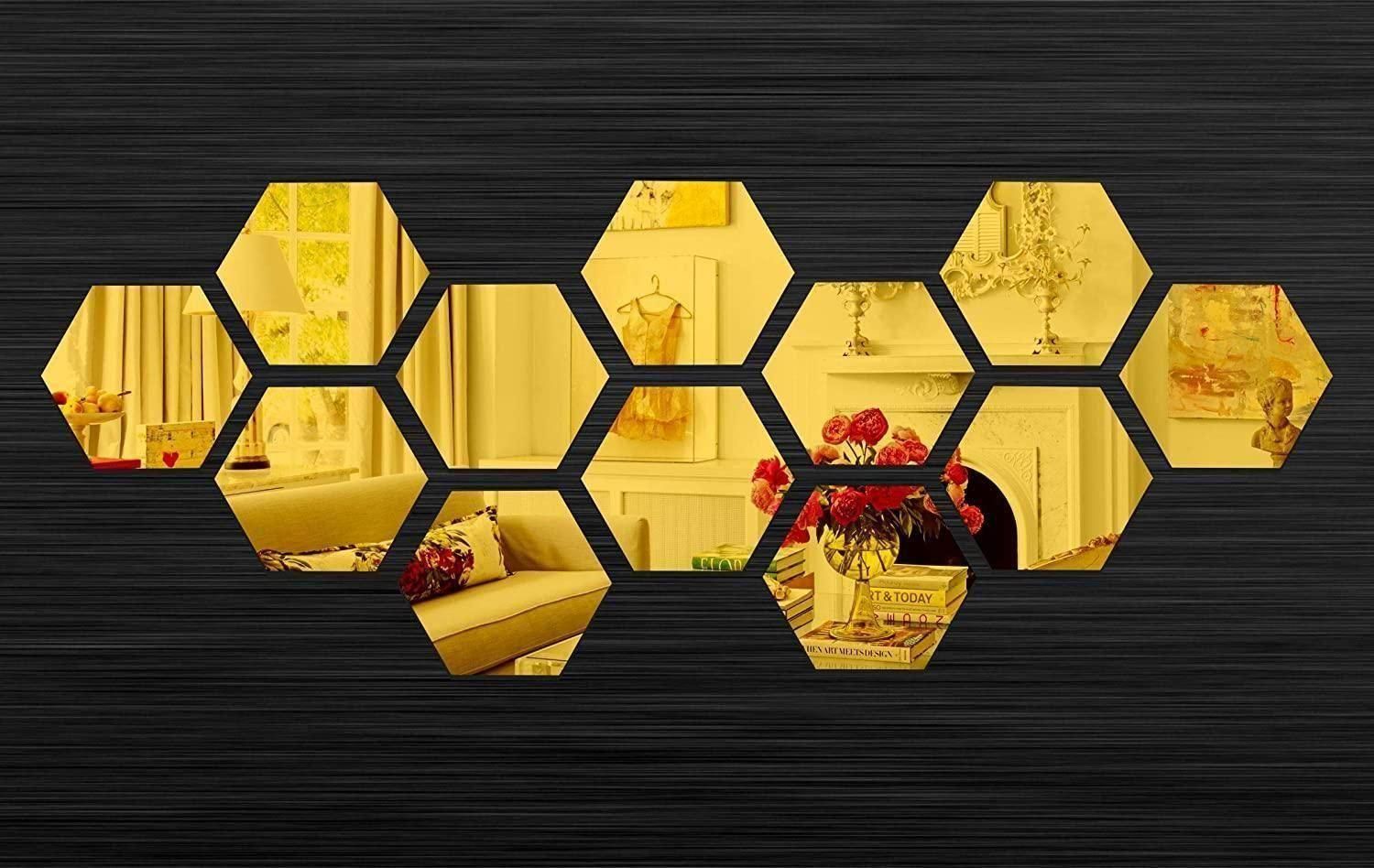 Item Type: Mirror Sticker Material:High-quality Acrylic Design:Hexagonal shape with 3D mirrored surface Color: Gold Size: 10.5 x 12cm Weight: 350g