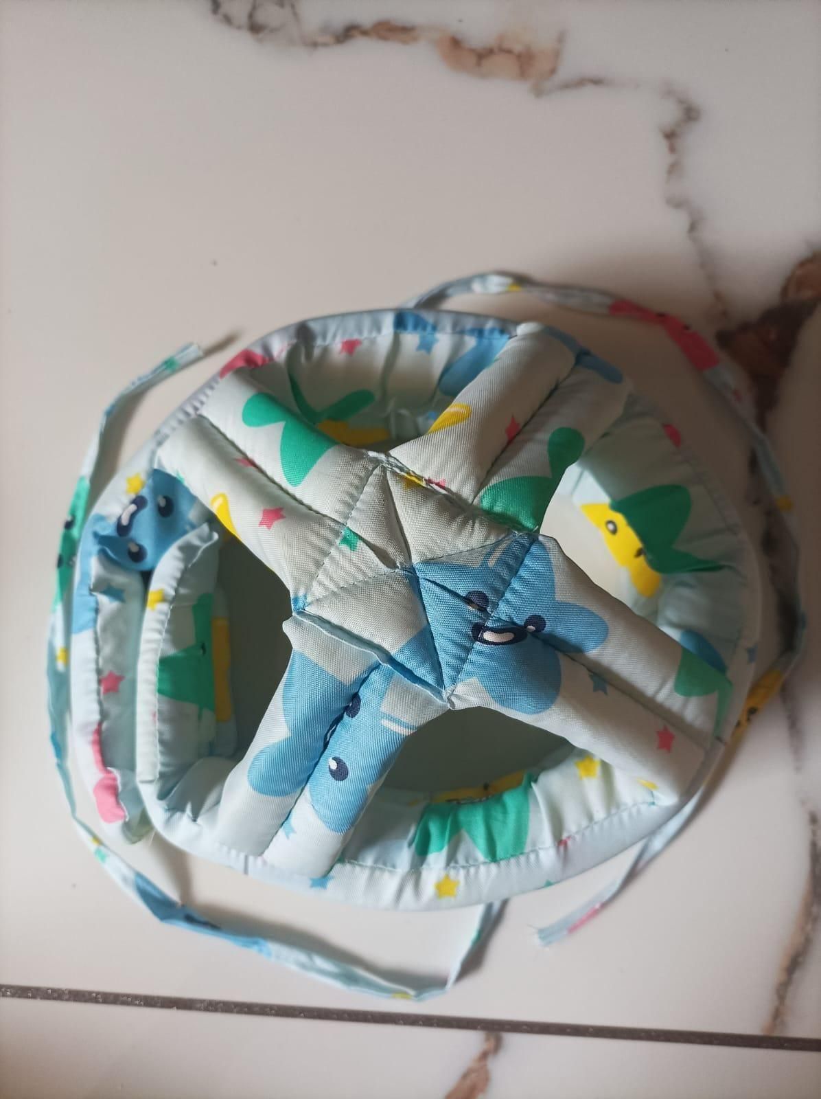 Item Type: Baby Protector Material:High Density Sponge Foam + 100% Cotton Adjustable Facility:Velcro Design Suitable Age:for 0~3 years old (6-36 months) Color: As per availability Size: 17 x 17 x 13cm Weight: 180g